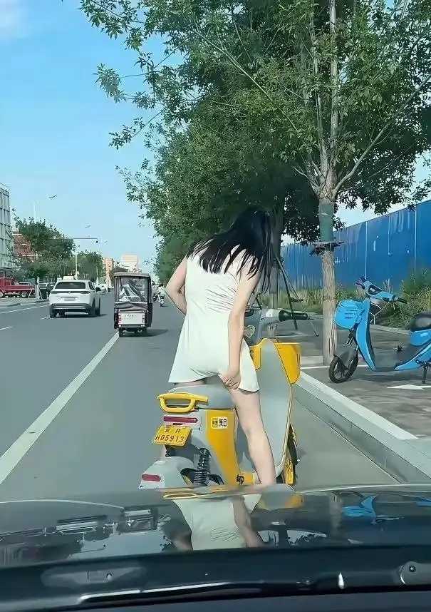 搞笑GIF:姑娘,你在这39°的天气穿裙子骑共享电动车,会不会有点?